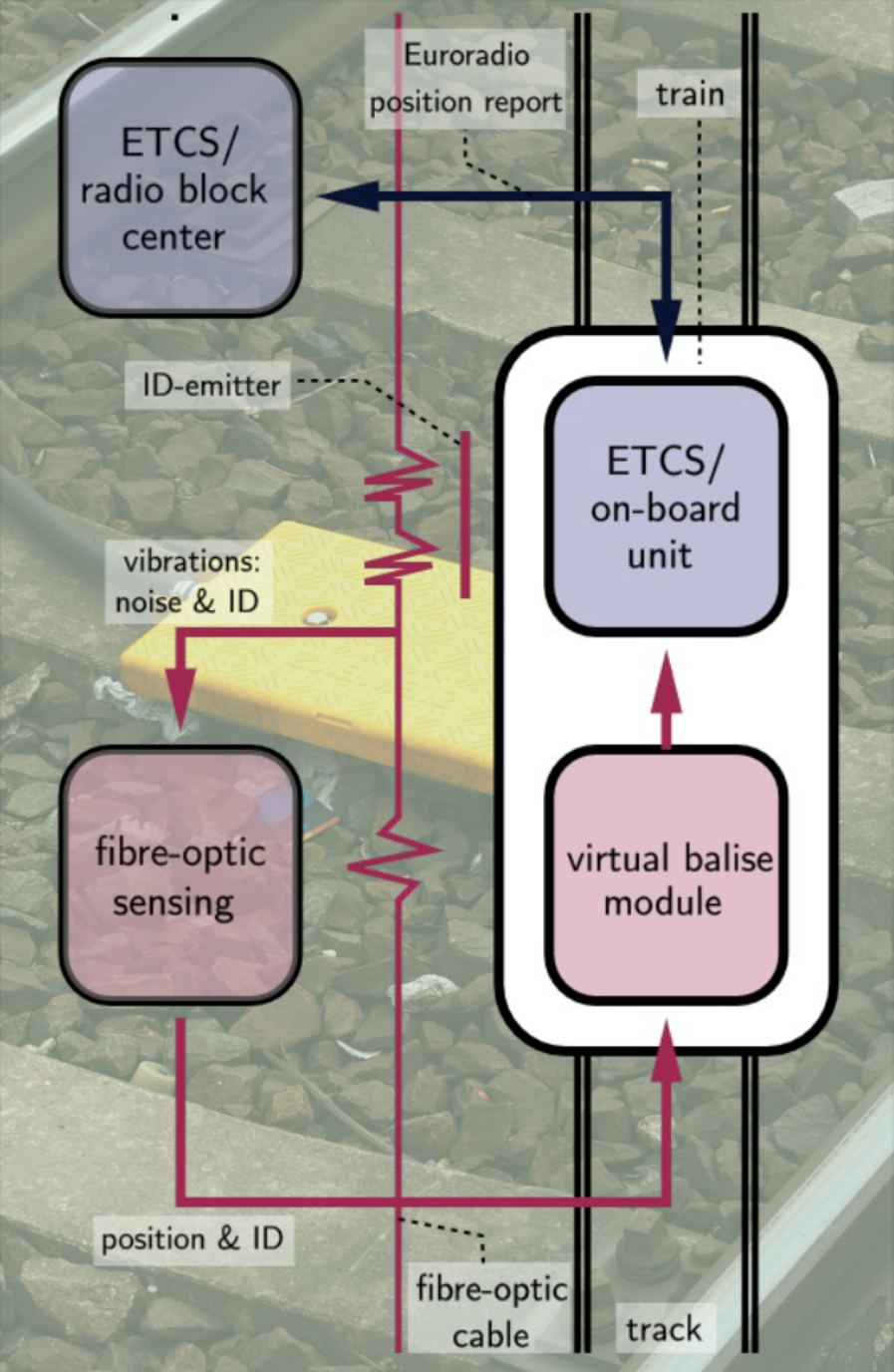 Ein System virtueller Balisen verzichtet auf den flächendeckenden Einsatz physischer Geräte. Stattdessen nutzt es alternative Technologien, um die Position der Züge zu bestimmen. Im Rahmen des Forschungsprojektes werden die Potentiale der FOS-Technologie ausgelotet, der lokalisierten Erschütterungsmessung in Glasfaserkabeln an der Bahnstrecke.